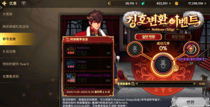 在隔壁服除了常规的买礼包获得至尊道具的途径外,基本上新至尊道具出来后会出一个“至尊转换”的活动。大家可以通过这个转换活动用以前的老至尊道具转换成新至尊道具,就像这个至尊称号转换活动。大家用老至尊称号有10%的几率直接转换成新至尊称号,值得注意的是,即使是其他普通称号也能转换成新至尊称号,不过几率只有5%了。所以说大家被淘汰的老至尊称号千万别丢掉,等上线了至尊转换系统就有大用处了。